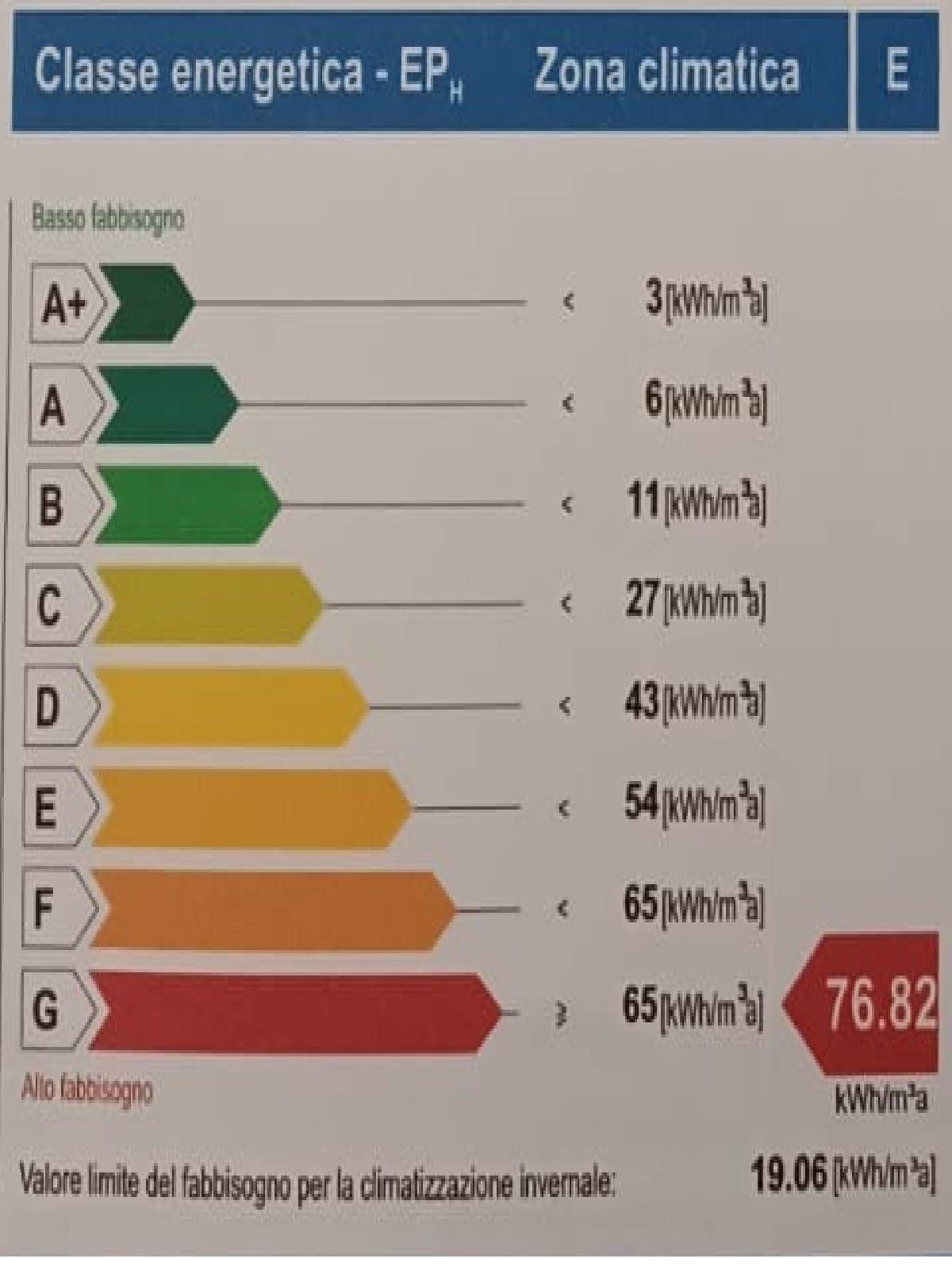 Classe energetica G 76,82 kWh/mqa